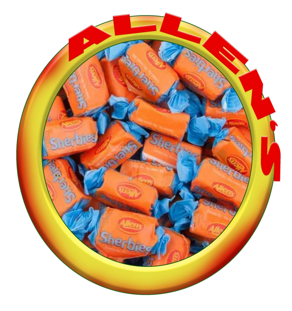 Allen’s SHERBIES are deliciously tangy orange flavoured chews with a fizzy sherbet centre. Twist open the vibrant blue and orange wrapper, pull the creamy coloured Sherbie out suck on it till you can feel the sherbet fizz tingle on your tongue, or simply bite straight into it.