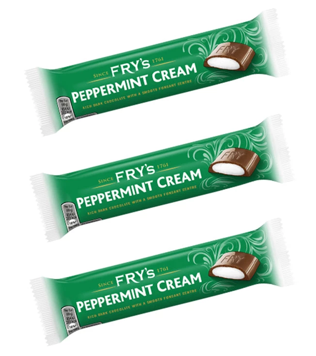 Fry’s Chocolate Cream is considered the direct descendent of Fry’s Cream Stick produced in 1853. The Cream Stick was the first industrialised and affordable chocolate bar. In 1875, Fry’s Chocolate cream was remoulded to the shape it still has today. During production, it once exceeded half a million units per day and the foil wrapping and label would appear in 1925. The Orange Cream and Peppermint Cream, followed by Fry’s Five Centre , were introduced in 1934. The Five Centre is no longer available – maybe one day they will bring it back. They have reintroduced the Raspberry Cream in 2020.