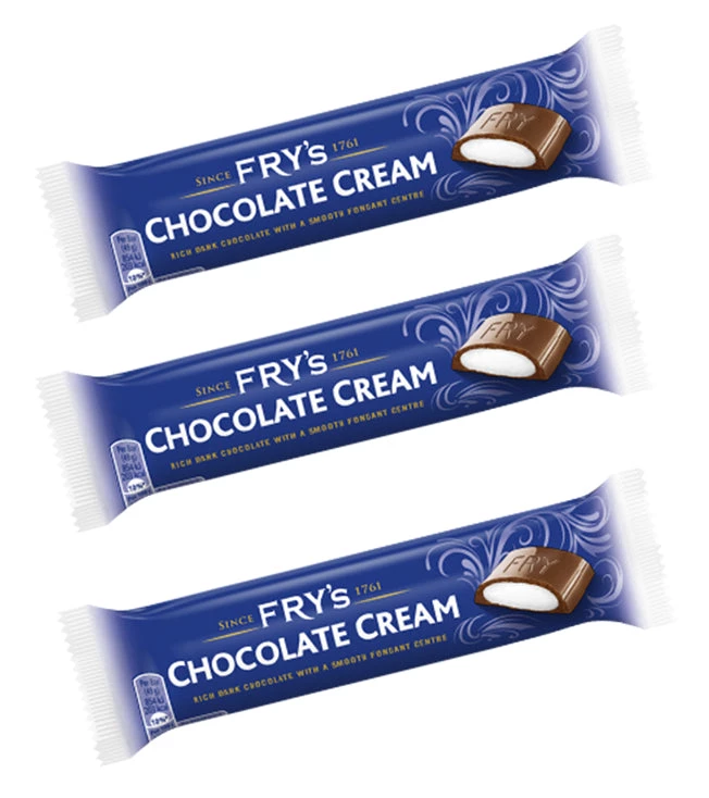 Frys Chocolate Cream Bars were first developed in 1866 by J.S Fry & Sons and currently manufactured by Cadbury in the UK. Fry’s Chocolate Cream is the first mass produced chocolate bar and is the world oldest chocolate bar brand. The original chocolate bar consists of a plain fondant centre enrobed in plain chocolate.
