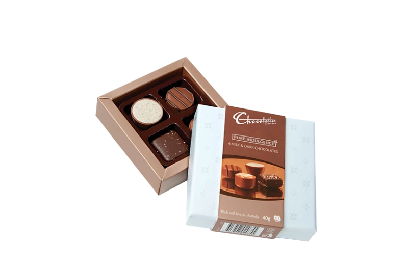 Be the first to review “Chocolatier Everyday Chocolatier Pure Indulgence White “Mini Treat Box” Milk & Dark Chocolate 40g” Cancel reply
