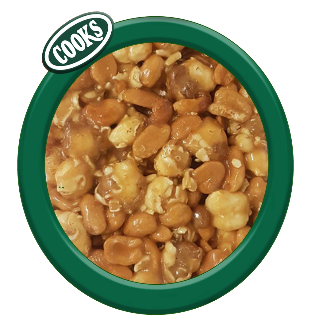 Crunchy caramelised Toffee brittle block cooked to Cooks special traditional recipe locking in all the goodness and natural flavours. Made with freshly popped popcorn for a unique take that might surprise.