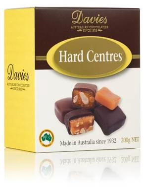 Sidney Davies started making chocolates from his home kitchen in 1932, crafting the most delicious assortment of fondants, hard centres, jellies and ginger, scrumptiously coated with only the finest chocolate. A lot has changed throughout the decades, but the emphasis has always been on retaining quality, hand crafted chocolates, using unique recipes and including all your favourites like dinner mints, caramels and ginger. Made in Sydney Australia all Davies Chocolates are Gluten Free.