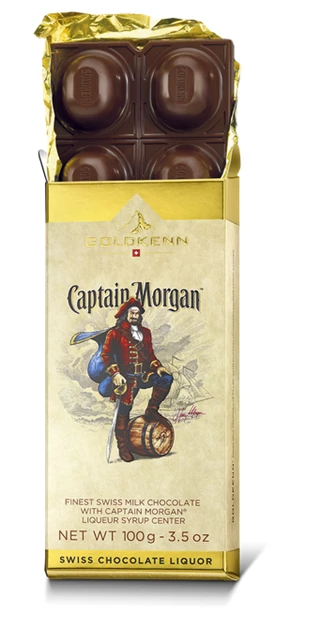 Swiss Milk Chocolate (37% Cocoa) filled with Captain Morgan Spiced Rum®
